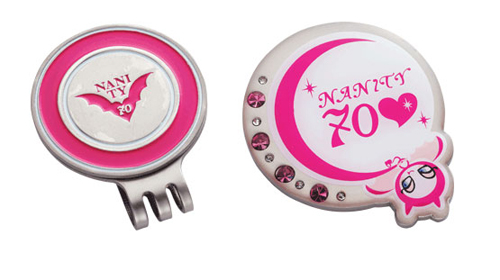 ナニティーとラインストーンが目を惹く、可愛らしいデザインのクリップマーカー。マーカーデザインも直径3.5cmと大きく、グリーン上でも目立ちます。