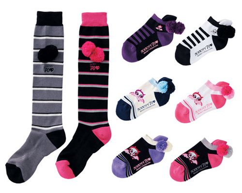 ボーダー柄がお洒落なレディス・ハイソックス ボンボンが可愛らしいショートソックス